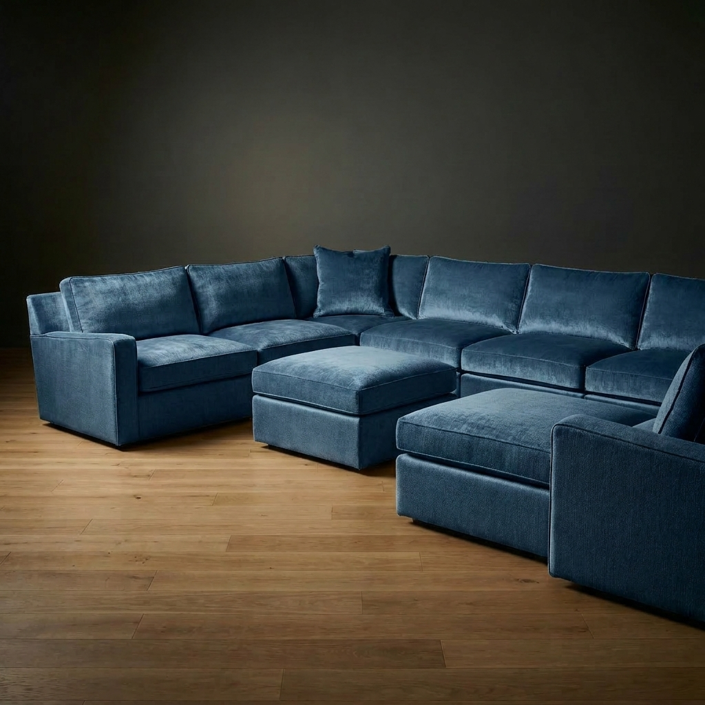The Ellington Sectional offers generous seating in a clean, architectural frame. Deep cushions paired with structural support create a balance of style and everyday comfort. A matching ottoman works as a footrest, extra seating, or surface. Modular configuration adapts to your room and your life.