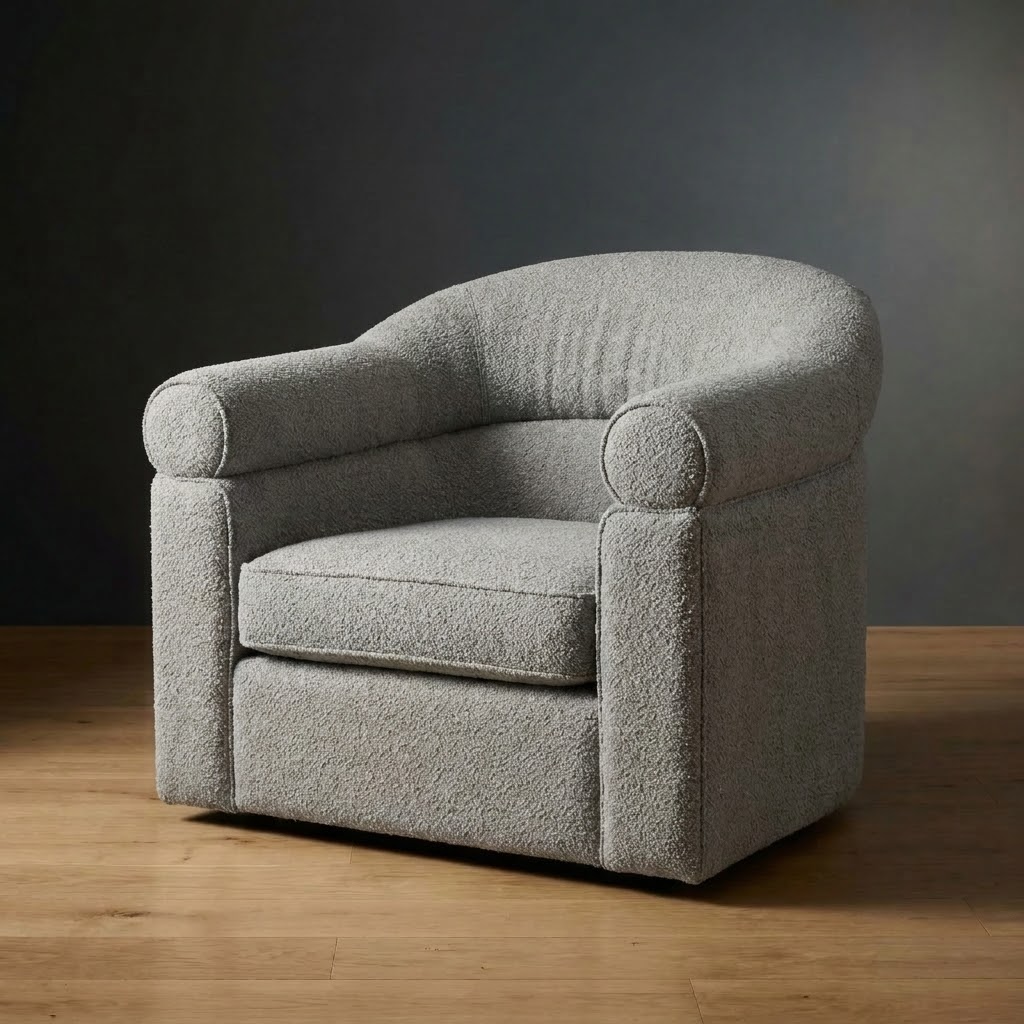Low, inviting, and quietly bold. The Halston Chair features a continuous curved form that wraps the sitter in comfort while maintaining a refined, architectural presence. Its clean lines and generous proportions make it a grounding accent piece for any living space.
