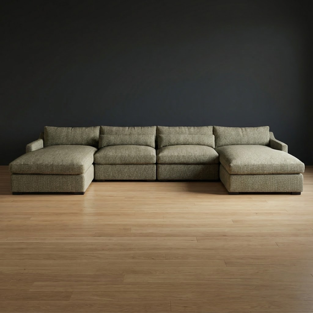 The Homestead Sectional is built for gathering. Chaise extensions on both ends let everyone stretch out and settle in. A low-profile frame, deep cushioning, and clean lines give it a relaxed, grounded presence that still feels polished. Built for spacious living areas where comfort is the priority.