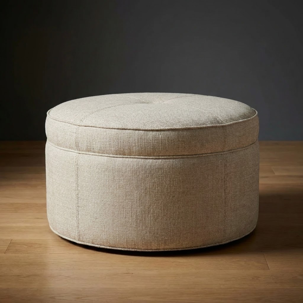 The Kensington Ottoman features a clean round silhouette with subtle tufting and tailored upholstery. Generously proportioned, it works as a focal point in a seating arrangement, provides additional seating, or serves as a sophisticated alternative to a traditional coffee table.