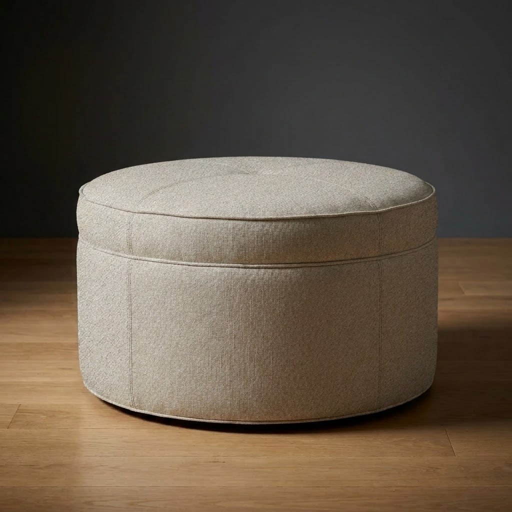 The Kensington Ottoman features a clean round silhouette with subtle tufting and tailored upholstery. Generously proportioned, it works as a focal point in a seating arrangement, provides additional seating, or serves as a sophisticated alternative to a traditional coffee table.