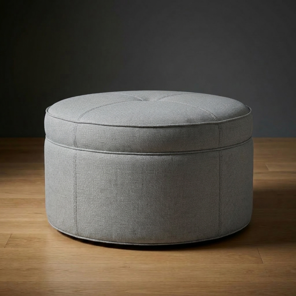 The Kensington Ottoman features a clean round silhouette with subtle tufting and tailored upholstery. Generously proportioned, it works as a focal point in a seating arrangement, provides additional seating, or serves as a sophisticated alternative to a traditional coffee table.