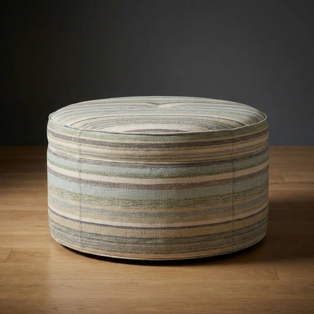 The Kensington Ottoman features a clean round silhouette with subtle tufting and tailored upholstery. Generously proportioned, it works as a focal point in a seating arrangement, provides additional seating, or serves as a sophisticated alternative to a traditional coffee table.