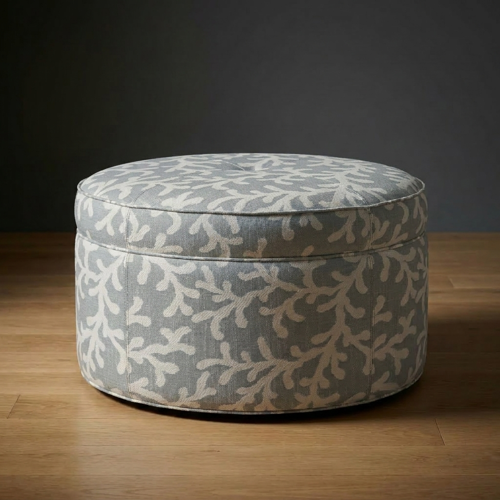 The Kensington Ottoman features a clean round silhouette with subtle tufting and tailored upholstery. Generously proportioned, it works as a focal point in a seating arrangement, provides additional seating, or serves as a sophisticated alternative to a traditional coffee table.