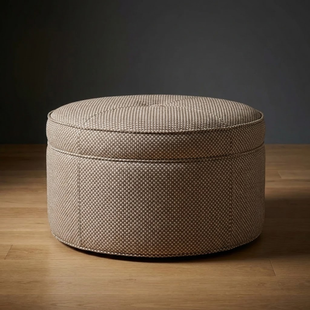 The Kensington Ottoman features a clean round silhouette with subtle tufting and tailored upholstery. Generously proportioned, it works as a focal point in a seating arrangement, provides additional seating, or serves as a sophisticated alternative to a traditional coffee table.