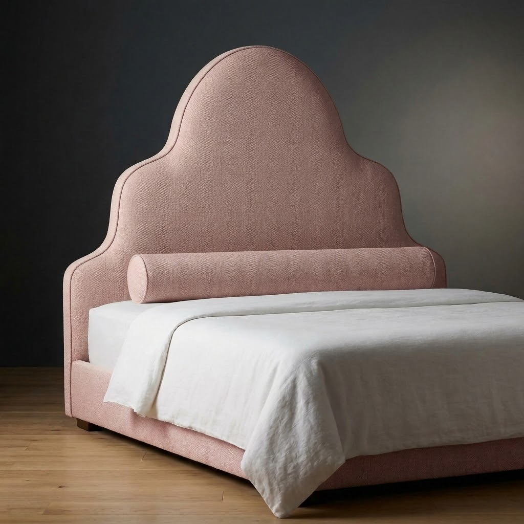 The Kingswell Bed brings vertical presence and sculpted elegance to the bedroom. A tall, upholstered headboard makes a confident design statement while maintaining clean sophistication. Built to anchor a room without overwhelming it.