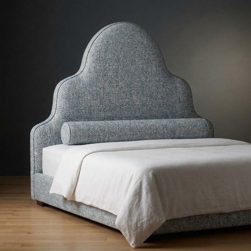 The Kingswell Bed brings vertical presence and sculpted elegance to the bedroom. A tall, upholstered headboard makes a confident design statement while maintaining clean sophistication. Built to anchor a room without overwhelming it.