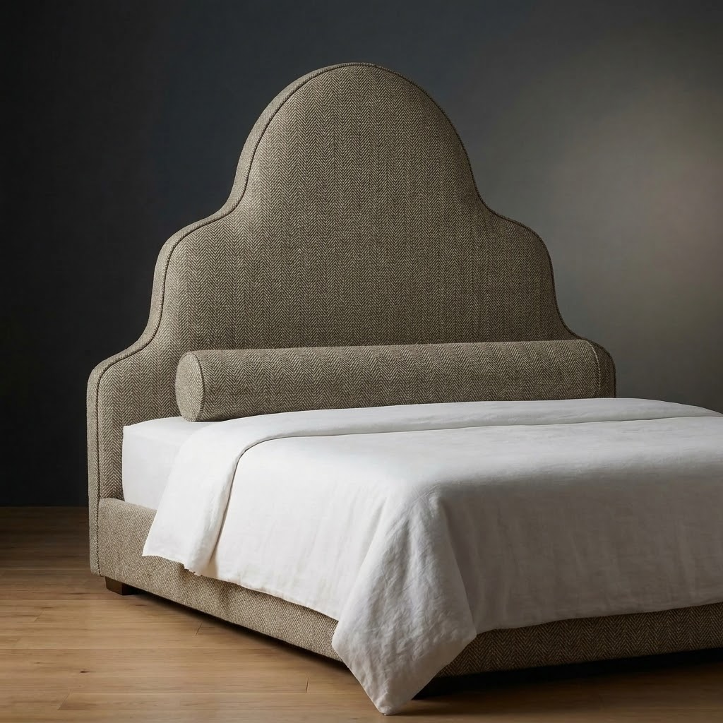 The Kingswell Bed brings vertical presence and sculpted elegance to the bedroom. A tall, upholstered headboard makes a confident design statement while maintaining clean sophistication. Built to anchor a room without overwhelming it.