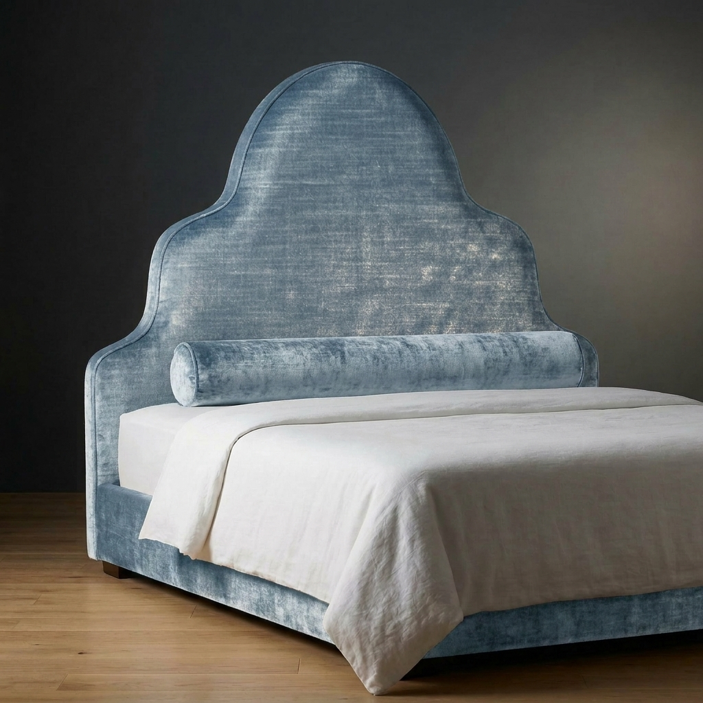 The Kingswell Bed brings vertical presence and sculpted elegance to the bedroom. A tall, upholstered headboard makes a confident design statement while maintaining clean sophistication. Built to anchor a room without overwhelming it.