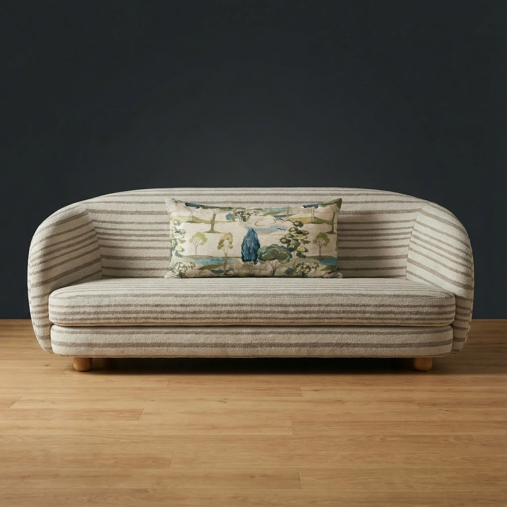 Soft lines and sculptural form define the Meridian Sofa. A rounded frame with plush upholstery delivers a contemporary yet enduring aesthetic. Generous seating and clean proportions make it a standout foundation piece for any room, balancing comfort with elegant styling.