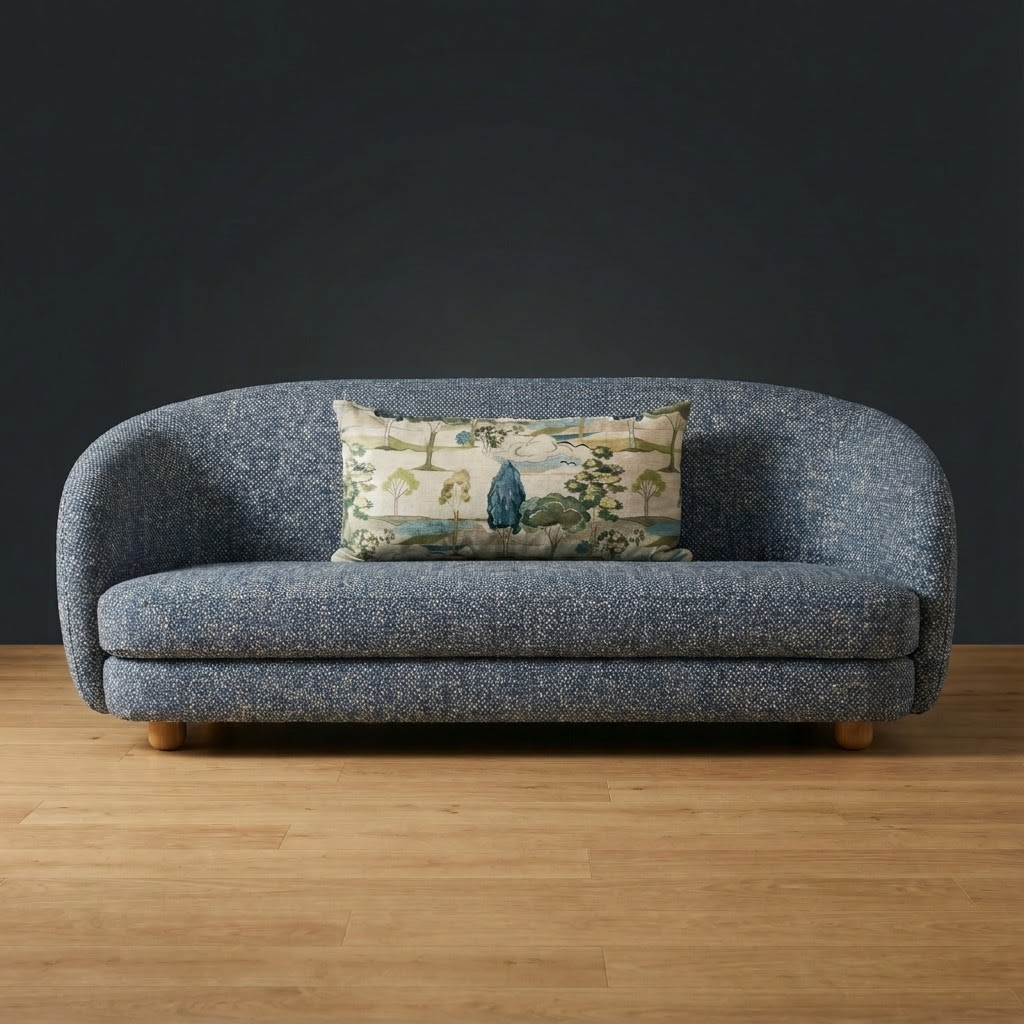 Soft lines and sculptural form define the Meridian Sofa. A rounded frame with plush upholstery delivers a contemporary yet enduring aesthetic. Generous seating and clean proportions make it a standout foundation piece for any room, balancing comfort with elegant styling.