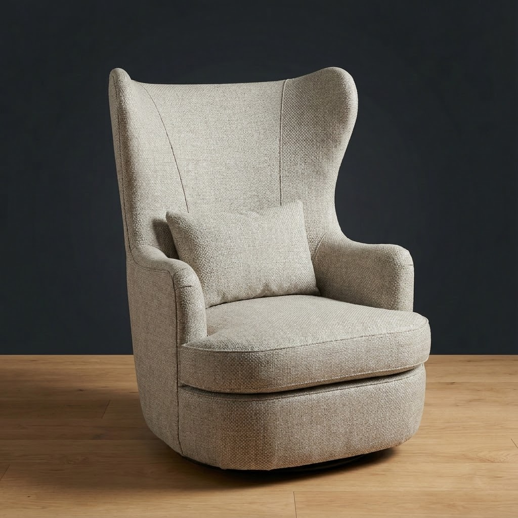 A modern interpretation of the timeless wingback. The Wayfarer Swivel Chair features an enveloping high back for supportive comfort and a smooth swivel base for effortless movement. Upholstered in top-grain leather with patterned fabric panel accents, it makes a statement in libraries, bedrooms, or living areas.