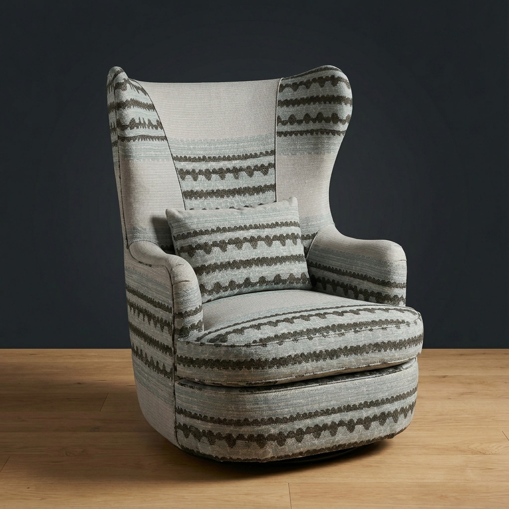 A modern interpretation of the timeless wingback. The Wayfarer Swivel Chair features an enveloping high back for supportive comfort and a smooth swivel base for effortless movement. Upholstered in top-grain leather with patterned fabric panel accents, it makes a statement in libraries, bedrooms, or living areas.