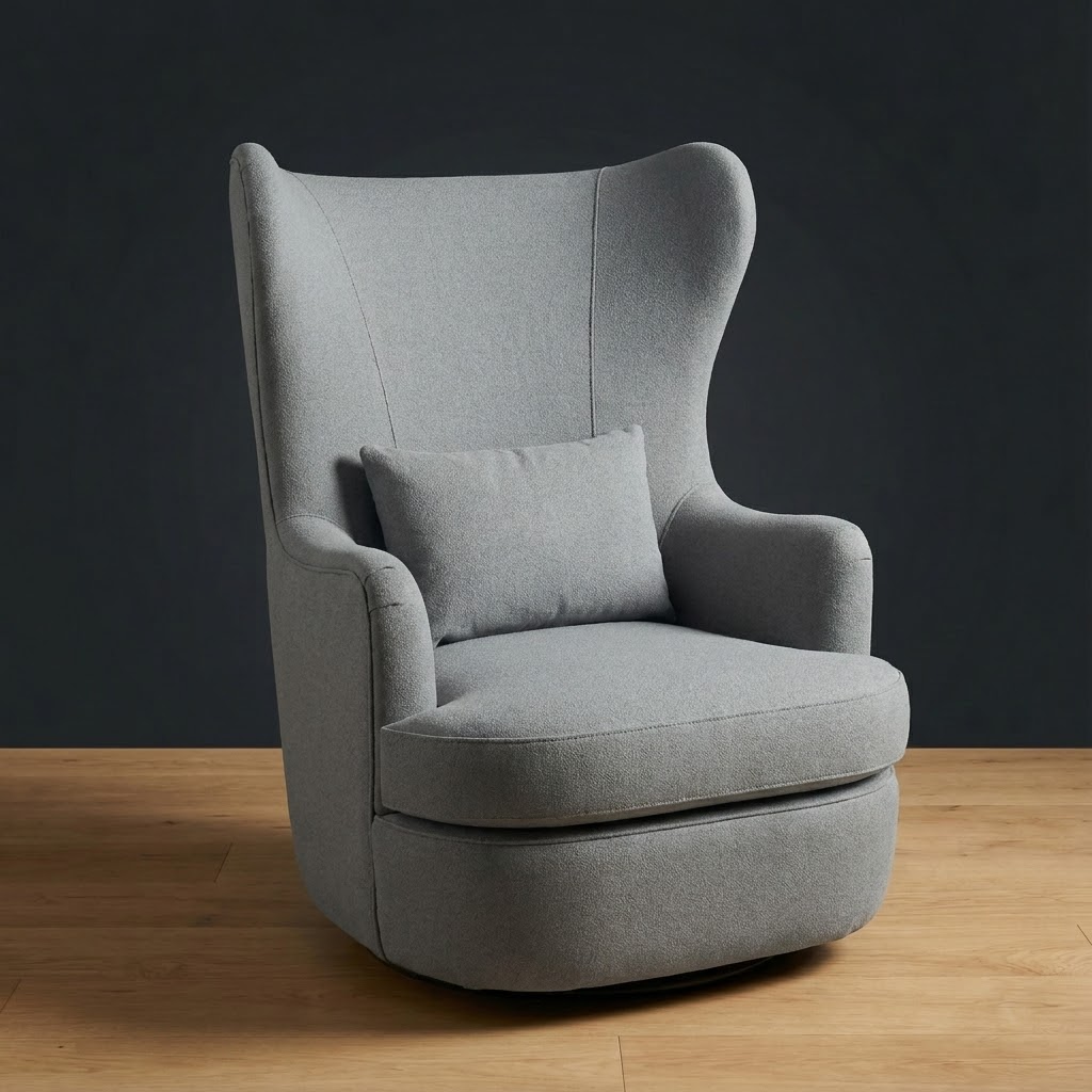 A modern interpretation of the timeless wingback. The Wayfarer Swivel Chair features an enveloping high back for supportive comfort and a smooth swivel base for effortless movement. Upholstered in top-grain leather with patterned fabric panel accents, it makes a statement in libraries, bedrooms, or living areas.