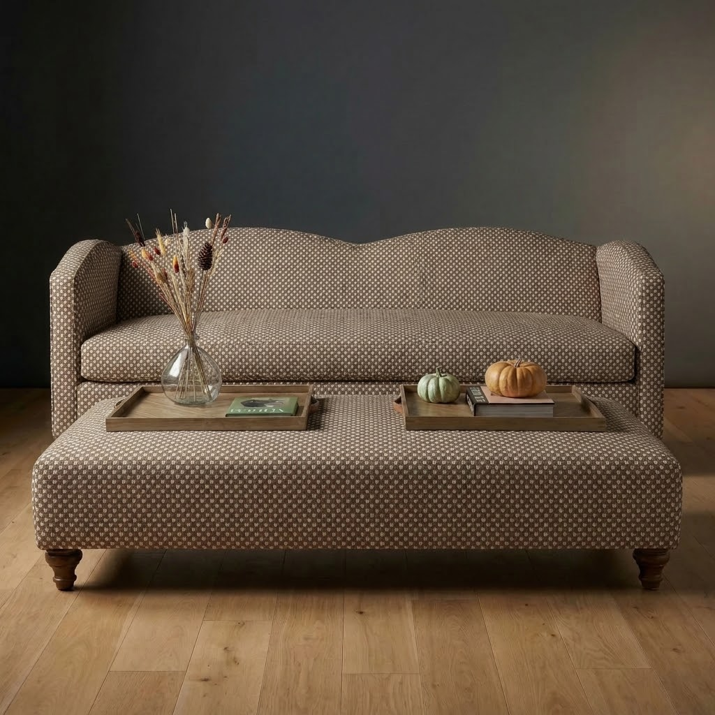 The Whitmore Sofa features a soft, sculpted silhouette with a subtle crown in the backrest that delivers understated elegance. Custom upholstered and designed for relaxed yet intentional seating, it brings warmth and refinement to any room. Pairs beautifully with the matching Whitmore Bench.