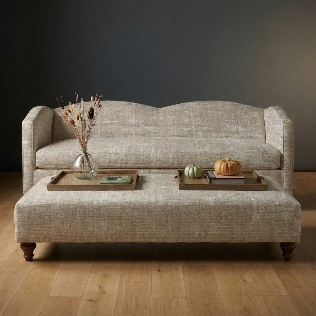 The Whitmore Sofa features a soft, sculpted silhouette with a subtle crown in the backrest that delivers understated elegance. Custom upholstered and designed for relaxed yet intentional seating, it brings warmth and refinement to any room. Pairs beautifully with the matching Whitmore Bench.