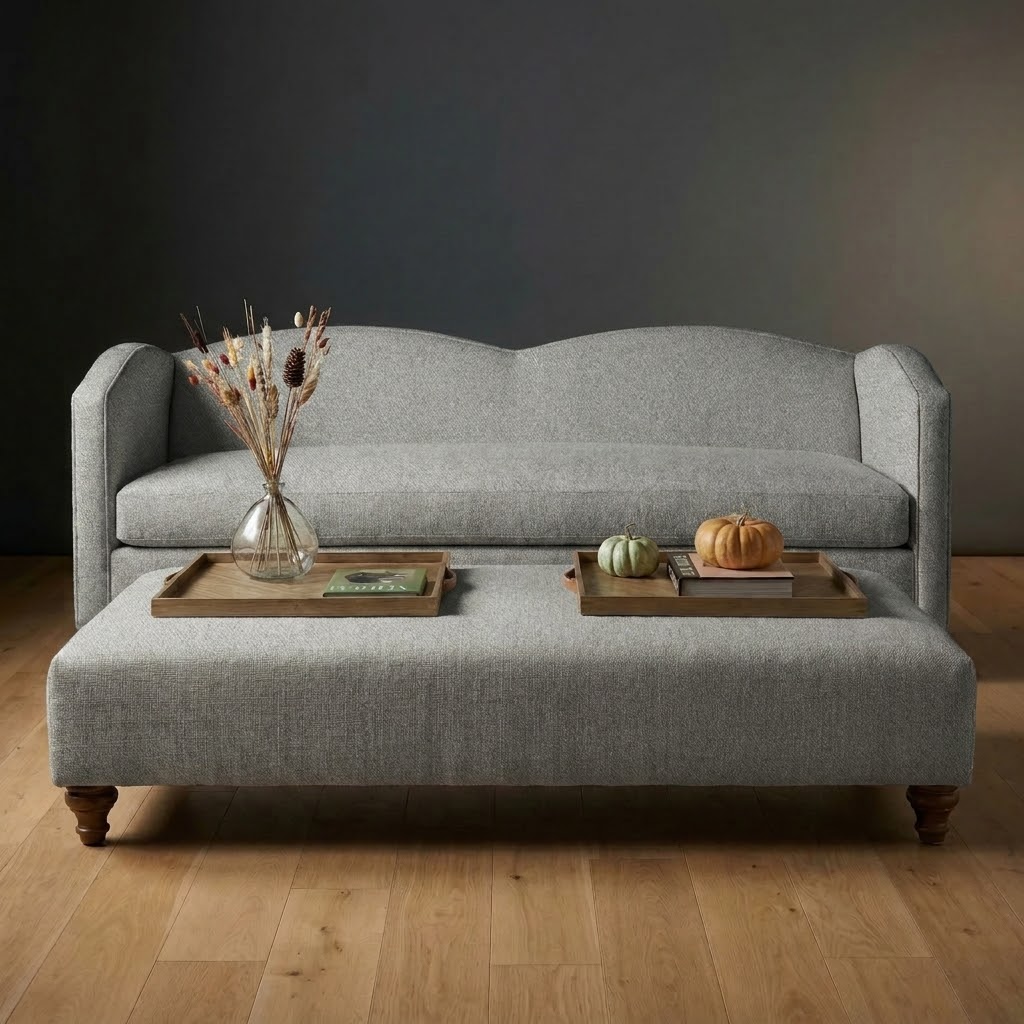 The Whitmore Sofa features a soft, sculpted silhouette with a subtle crown in the backrest that delivers understated elegance. Custom upholstered and designed for relaxed yet intentional seating, it brings warmth and refinement to any room. Pairs beautifully with the matching Whitmore Bench.