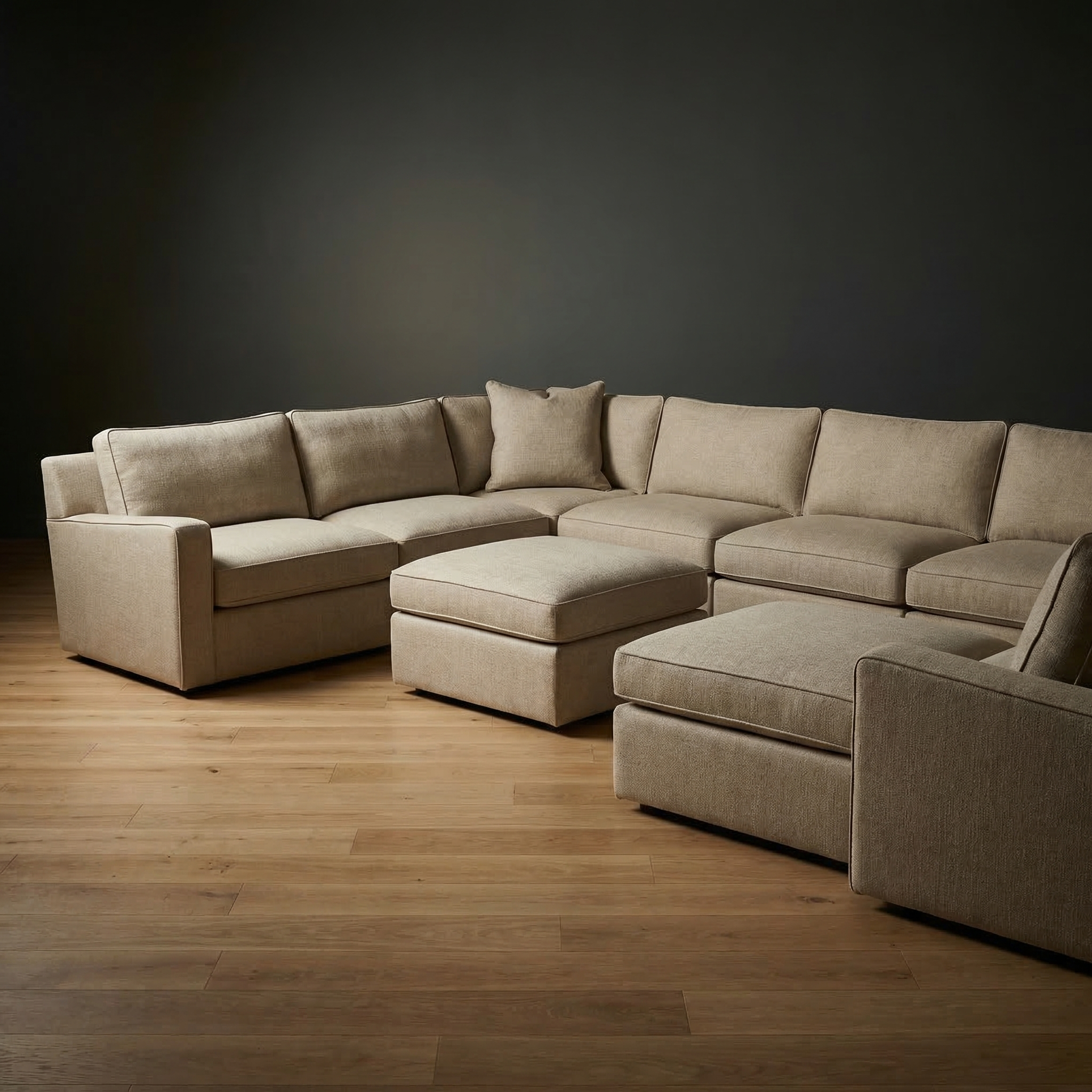 The modular layout allows for flexibility in both large and intimate spaces, anchored by a matching ottoman that can function as a footrest, extra seating, or a central table. Built with a focus on proportion and durability, the Ellington is equally suited for quiet nights in or a full house of guests.