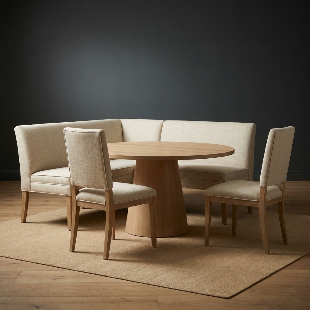 Softly upholstered seating creates an intimate, welcoming dining experience. The Arden Collection is designed for connection, blending natural materials with tailored comfort.